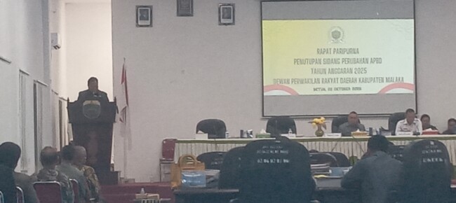LaskarMalaka.com || Dewan Perwakilan Rakyat Daerah (DPRD) Kabupaten Malaka menggelar Rapat Paripurna Penutupan Sidang Perubahan Anggaran Pendapatan dan Belanja Daerah (APBD) Tahun Anggaran 2025, Rabu (22/10/2025), di Ruang Sidang DPRD Malaka, Betun. Penetapan perubahan APBD ini menjadi dasar pelaksanaan berbagai program prioritas pembangunan daerah.