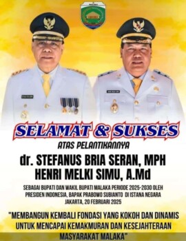 Laskarmalaka.com || Presiden Prabowo Subianto telah melantik dr. Stefanus Bria Seran,MPH dan Henri Melki Simu,A.Md Sebagai Bupati dan wakil Bupati Kabupaten Malaka di Istana Presiden, Jakarta, Kamis (20/02/2025).