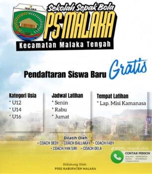 Laskarmalaka.com || Sekolah Sepakbola PS Malaka Kecamatan Malaka Tengah yang didirikan oleh Pemda Malaka dibawah kepemimpinan Bupati Malaka,dr.Stefanus Bria Seran dan Wakil Bupati Malaka, Henri Melki Simu resmi membuka pendaftaran. Program ini ditujukan bagi anak-anak di wilayah Malaka Tengah dan sekitarnya untuk mengembangkan bakat olahraga sejak usia dini. Senin, 8 Desember 2025.