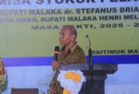 Laskarmalaka.com || Frans Xaverius Skera dalam sambutannya di misa syukur pelantikan Bupati dan Wakil Bupati Malaka, dr.Stefanus Bria Seran MPH dan Henri Melki Simu…
