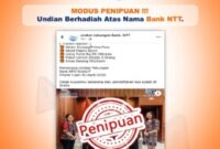 Laskarmalaka.com || Kupang, Gelombang penipuan online yang mengatasnamakan Bank NTT kembali marak di Nusa Tenggara Timur (NTT). Masyarakat diimbau untuk lebih waspada terhadap modus…